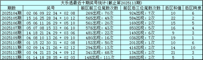 体彩大乐透第25113期奖号开出:01 14 18 28 35+02 03,前区奖号大小比为3:2,012路比为1:2:2,奇偶比为2:3,后区号码和值为5,跨度为1。