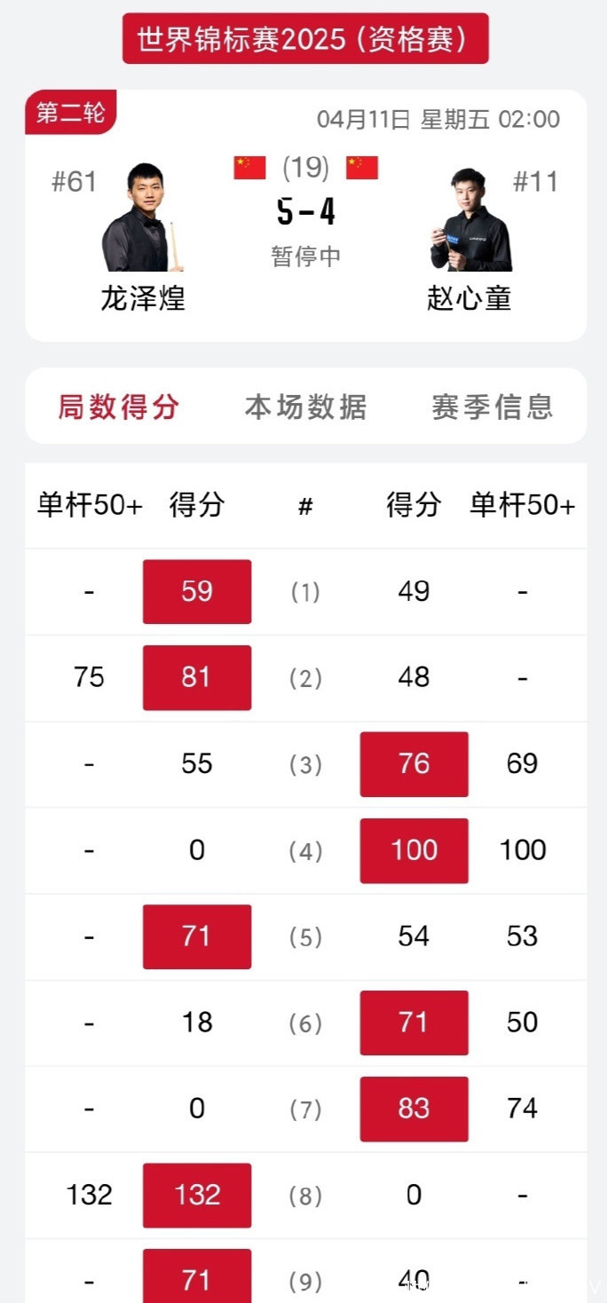 应对淘汰张家玮之后,赵心童又在第二轮迎来与龙泽煌的中国德比战。28岁的龙泽煌是一位颇具实力的球员,现在的天下排行位居第61位。本赛季,龙泽煌如故在武汉公开赛打进四强。