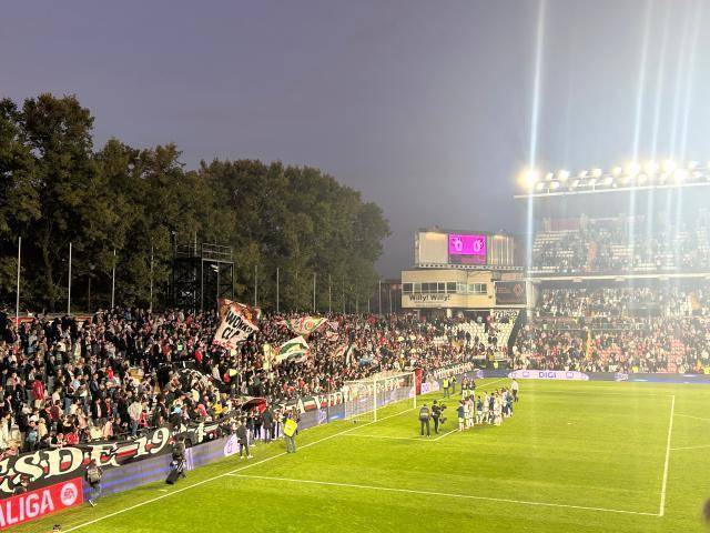 当笔者走进闪电军团主场巴列卡斯球场时,也躬行感受到了这座球场的苟简,这里领取媒体证的场地仅有一张桌子,媒体席是球迷看台上的一些座椅改建而成,整座球场是典型的旧式西班牙球场作风,门径至极衰弱,容量不外一万多东说念主。此前在复兴波兹南莱赫官方账号嘲讽之时,巴列卡诺主席也略显无奈地默示:“咱们也无法私自扩建巴列卡斯球场,因为球场面有权不在俱乐部,而在市政府。”关于体量有限的闪电军团来说,莫得信得过属于我方的球场也制约了俱乐部发展。